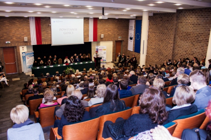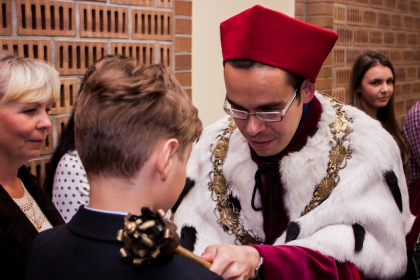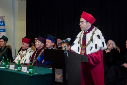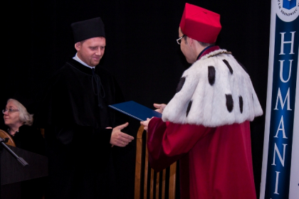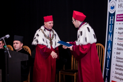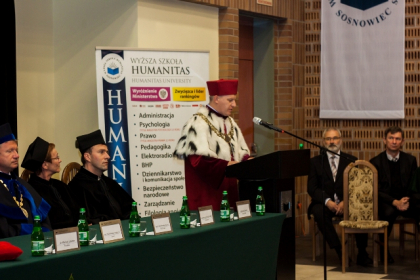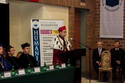 - Rozpoczynamy dziś kolejny rok akademicki. Kilka tygodni temu w tej auli wręczałem nagrody najlepszym spośród tegorocznych absolwentów WSH. Oni już opuścili mury uczelni. Ale dziś będę wręczał indeksy studentom rozpoczynającym akademicką przygodę. To swoista sztafeta pokoleń. Dzięki niej rozwija się uczelnia i wciąż ma kogo kształcić. Absolwenci WSH obejmują ważne stanowiska. Bardzo jesteśmy dumni z faktu, iż naszymi absolwentami są m.in.: prezydent Sosnowca - Arkadiusz Chęciński, zastępca Komendanta Wojewódzkiego Policji w Katowicach – insp. Andrzej Szymczyk oraz wiceprezydent Sosnowca – Mateusz Rykała, który ukończył studia podyplomowe. Te kariery najlepiej świadczą o tym, że WSH dobrze wypełnia swoją rolę – mówił dr hab. Michał Kaczmarczyk, otwierając uroczystość XIX Inauguracji Roku Akademickiego w Wyższej Szkole Humanitas.