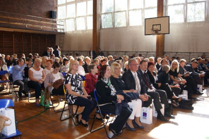 W sobotę 10 października, w budynku liceum odbyła się część oficjalna uroczystości, podczas której gratulacje i życzenia dla szkoły na ręce dyrektora Piotra Smoka składali przedstawiciele władz samorządowych, byli dyrektorzy, nauczyciele, absolwenci, uczniowie oraz przedstawicielka Wyższej Szkoły Humanitas, mgr Ewa Kraus – prodziekan Wydziału Nauk Humanistycznych, która w imieniu rektora prof. WSH dra hab. Michała Kaczmarczyka odczytała list gratulacyjny oraz przekazała, specjalnie zaprojektowaną na tę uroczystość, statuetkę symbolizującą długą i owocną współpracę z liceum.