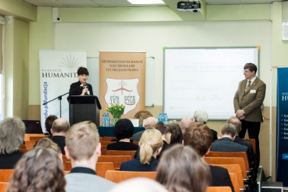 Władze Uczelni oraz przybyłych gości przywitali organizatorzy konferencji: dyrektor Instytutu Administracji i Prawa Wyższej Szkoły Humanitas w Sosnowcu - dr Anna Rogacka-Łukasik oraz prof. nadz. dr hab. Paweł Chmielnicki - Prezes Zarządu Stowarzyszenia Badań nad Źródłami i Funkcjami Prawa „Fontes”. Uroczystego otwarcia konferencji dokonała prof. nadzw. dr Maria Zrałek - dziekan Wydziału Nauk Humanistycznych oraz Wydziału Administracji i Zarządzania WSH, podkreślając ważność i aktualność tematyki konferencji. Następnie słowo wstępne wygłosił prof. nadzw. WSH dr Bolesław Ćwiertniak, Wiceprezes Zarządu Stowarzyszenia Badań nad Źródłami i Funkcjami Prawa „Fontes”, jak również profesor w Wyższej Szkole Humanitas w Sosnowcu, który po przywitaniu gości i przedstawieniu porządku obrad konferencji, omówił jej zakres tematyczny.