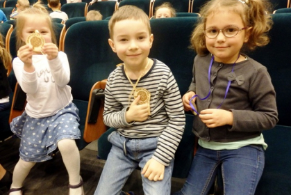 Dzieciaki wzięły udział w fascynującym wykładzie na temat światowego kina. Prezentację przygotował artysta, aktor i muzyk - Konrad Bilski. Podczas uroczystej gali mali studenci odebrali z rąk Pani Dziekan WSH mgr Mai Chyży-Dudek dyplomy oraz pamiątkowe medale. Na ręce dyrektorów i opiekunów natomiast złożono podziękowania za owocną współpracę. Dziękujemy partnerskim przedszkolom i zapraszamy po wakacjach do kolejnej edycji projektu!