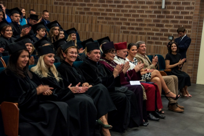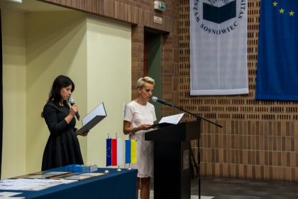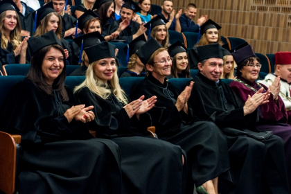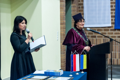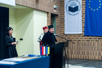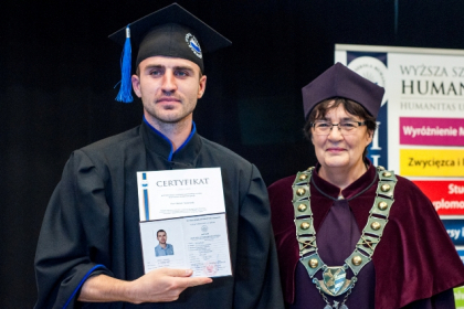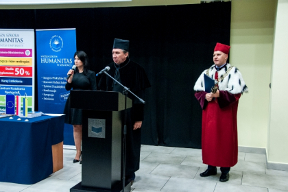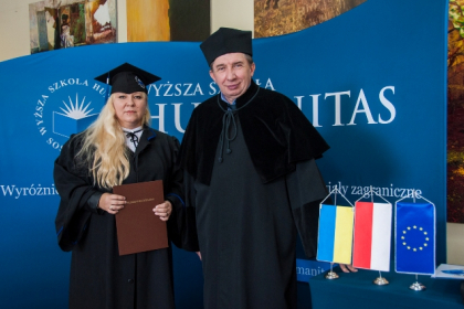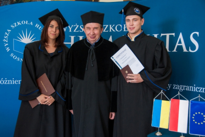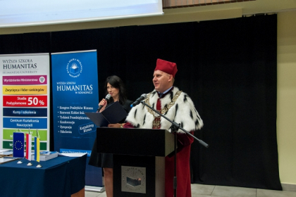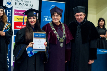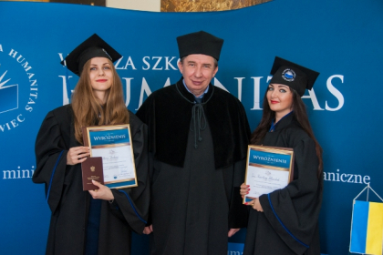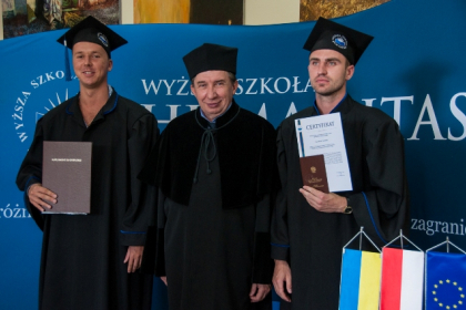 Tegoroczną Galę Absolwentów projektu rozpoczęło wystąpienie prorektora Wyższej Szkoły Humanitas, dra Mariusza Lekstona. - W chwili podjęcia studiów staliście się częścią społeczności akademickiej Wyższej Szkoły Humanitas; dziś dołączacie do grona absolwentów uczelni, a jednocześnie jej ambasadorów. Ambasadorów, którzy w Europie i na świecie będą świadczyli o wysokim poziomie wiedzy, umiejętności i kompetencji, będących efektem kształcenia w Wyższej Szkole Humanitas. Jestem przekonany, że wywiążecie się wzorowo z tej roli. Jestem też przekonany, że dyplom, który za chwilę odbierzecie z rąk pani dziekan, otworzy przed wami nowe interesujące i atrakcyjne perspektywy zawodowe – podkreślił prorektor, który podziękował również wszystkim zaangażowanym w organizację i realizację projektu: zespołowi Biura Współpracy z Zagranicą kierowanemu przez prodziekan WSH, mgr Maję Chyży-Dudek, oraz koordynatorowi projektu, dyrektorowi Instytutu Polsko-Ukraińskiej Współpracy - prof. Yuriowi Karyaginowi.