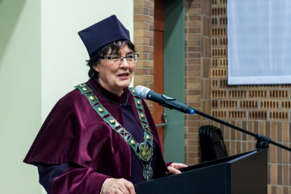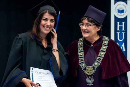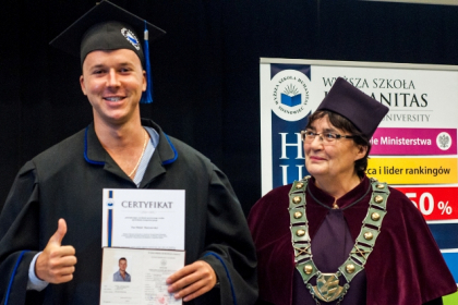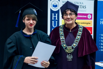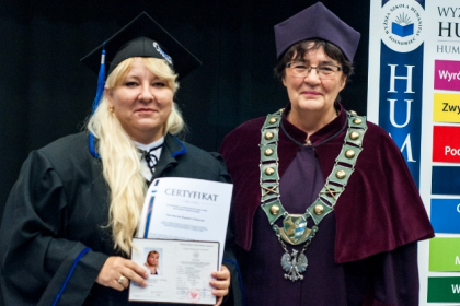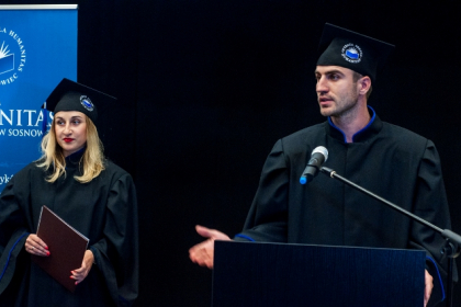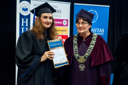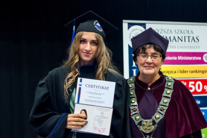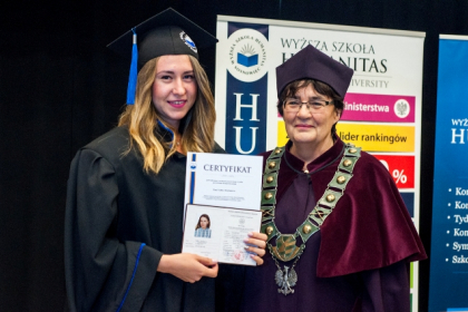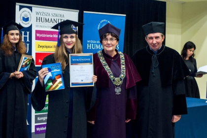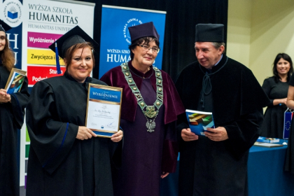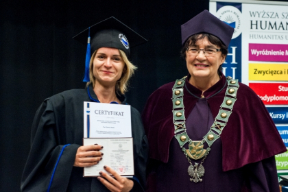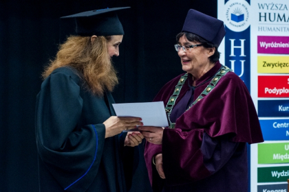 Studenci odebrali dyplomy z rąk pani dziekan dr Marii Zrałek, prof. WSH, która pogratulowała wszystkim absolwentom i zaznaczyła, że są oni przykładem na to, że forma kształcenia na odległość przynosi dobre efekty. – Państwo, studiując w takiej formie, wykazaliście, że można się tak uczyć, choć jest to duży nakład pracy. Mam nadzieję, że kontakt z naszą uczelnią zaowocował zdobyciem wiedzy, którą będziecie mogli zastosować w swoim zawodzie czy zmianie zawodu. Życzę wam powodzenia w życiu osobistym i zawodowym. Jeśli kiedyś zatęsknicie za Sosnowcem. Drzwi naszej uczelni są dla państwa zawsze otwarte – mówiła dziekan Zrałek.