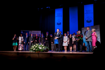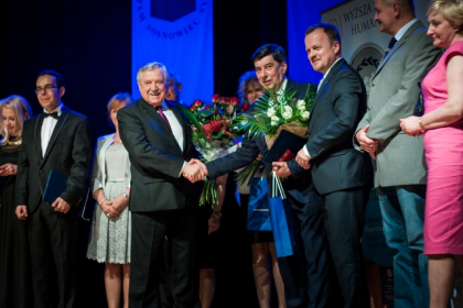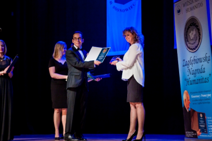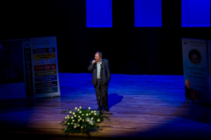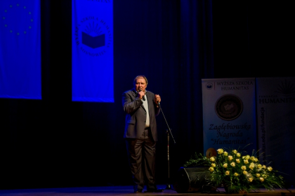 Zanim jednak zebrani widzowie poznali tegorocznych laureatów Nagrody „Humanitas”, gala stała się okazją do uhonorowania jeszcze jednej zasłużonej dla Zagłębia osoby. Prof. Dariusz Rott, ubiegłoroczny laureat Zagłębiowskiej Nagrody „Humanitas” w kategorii honorowej, odebrał z rąk prof. WSH dr Marii Zrałek, dziekan Wydziału Nauk Humanistycznych WSH, Odznakę Zasłużony dla Kultury Polskiej, przyznaną przez Ministra Kultury i Dziedzictwa Narodowe. – Dziękuję władzom uczelni za wystąpienie do Ministra o to wyróżnienie. Jestem wzruszony że było skuteczne. Jest to dla mnie niezwykle ważne, bo jest to dowód na dostrzeżenie mojej pracy w kulturze, którą staram się w jakiejś cząstce wykonywać – mówił prof. Dariusz Rott.
