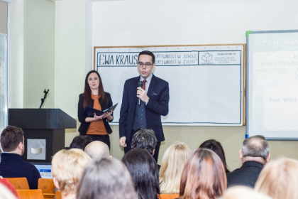 Ponad 60 dyrektorów szkół oraz innych placówek oświatowych, a także naczelnicy wydziałów edukacji z całego woj. śląskiego gościli w Wyższej Szkole Humanitas podczas konferencji „Dyrektor Liderem Nowoczesnej Edukacji”. Tematem wydarzenia, które odbyło się w czwartek 24 listopada 2016 r. były nowoczesne i nieszablonowe metody kształcenia, które odpowiadałyby potrzebom współczesnej szkoły. Wśród poruszanych zagadnień pojawiły się m.in.: gra w szachy, praca metodą WebQuest, myślenie wizualne, czy podstawy programowania. Spotkanie było kolejnym z cyklu konferencji „Dyrektor Liderem”.