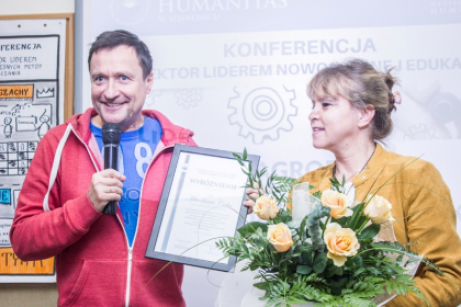 - Dziś dyrektor to przywódca edukacyjny, który wyprzedza o krok zespół, którym zarządza, proponuje i wprowadza edukację wspieraną przez nowoczesne technologie, który ma wizję kształtu szkoły. Konferencyjne warsztaty nt. „Myślenia wizualnego”, poprowadzone przez Małgorzatę Klich-Śmiałkowską i Katarzynę Wilk ukazały szerokie możliwości wspomagania edukacji poprzez obraz, wizualizację edukacyjnych zdarzeń. Niemniej pasjonującymi i godnymi polecenia stało się warsztatowe spotkanie z Sabiną Furgoł nt. nauki programowania edukacji przedszkolnej i wczesnoszkolnej z wykorzystaniem maty edukacyjnej oraz programu Scratch Junior. Konferencja bezspornie spełniła zakładane cele – podkreśla Elżbieta Horbatowska, dyrektor Liceum Ogólnokształcącego im. Jana Pawła II w Siewierzu, wizytator kuratorium oświaty.