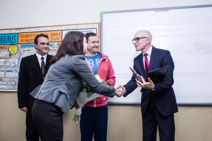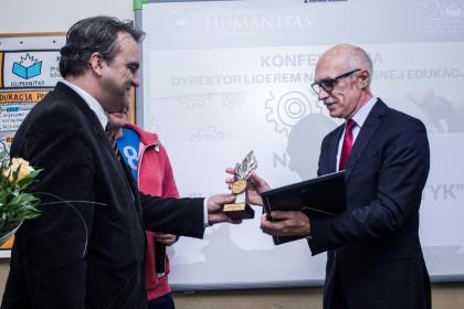Podczas konferencji wręczono także nagrody „Lidera Dobrych Praktyk 2016”. Z rąk dra Aleksandra Mańki – dyrektora Instytutu Pedagogiki WSH, mgr Ewy Kraus – prodziekan WSH oraz, gościnnie, Jacka Kawalca – aktora i artysty, który zaśpiewa podczas koncertu „Krajobrazy Serc” będącego wydarzeniem towarzyszącym obchodom 20-lecia Wyższej Szkoły Humanitas, wyróżnienia odebrali: Marek Wiewiórowski – dyrektor VI LO im. J. Korczaka i Mirosława Całka – dyrektor Gimnazjum w Wojkowicach. Statuetkę natomiast otrzymał Jacek Górski - dyrektor Centrum Kształcenia Zawodowego i Ustawicznego Kilińskiego 25 w Sosnowcu.