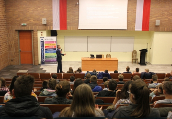 W ramach „Misji Magister” uczniowie Miejskiego Gimnazjum nr 1 i 2 w Piekarach Śląskich, Gimnazjum w Wojkowicach oraz Gimnazjum nr 1 w Zawierciu odwiedzili Wyższą Szkołę Humanitas, aby wziąć udział w wykładzie interaktywnym z zakresu cyberbezpieczeństwa. Zajęcia poprowadził Krzysztof Popiół, kierownik Działu IT WSH.