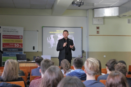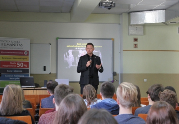 Podczas wykładu, który zgromadził blisko 50 osób – uczniów i studentów z terenu Zagłębia Dąbrowskiego zainteresowanych projektem Zagłębiowskiej Akademii Liderów – dr Krystian Dudek, dyrektor Instytutu Dziennikarstwa i Komunikacji Społecznej Humanitas, właściciel Instytutu Publico oraz prezes Polskiego Stowarzyszenia Public Relations, odpowiedział na pytania o to, jak otoczenie postrzega lidera i co go charakteryzuje. Podzielił się także ze słuchaczami podstawowymi zasadami komunikowania siebie i budowania swojej marki osobistej.