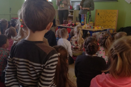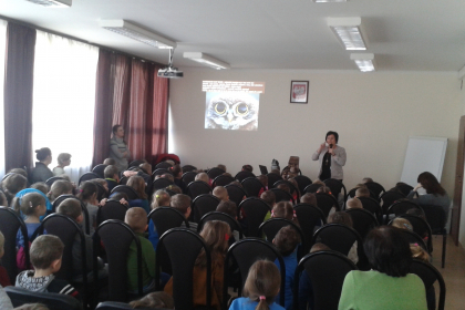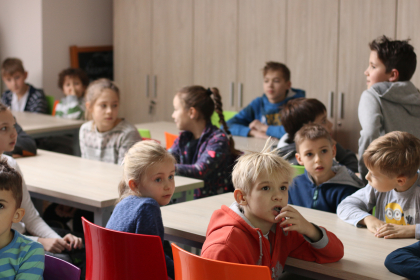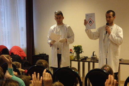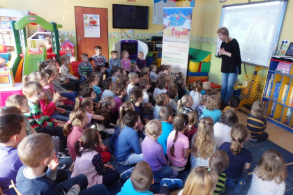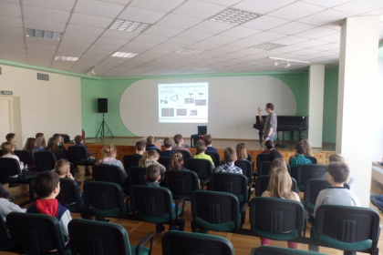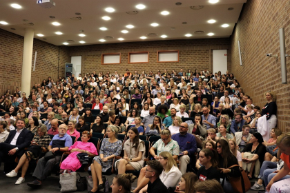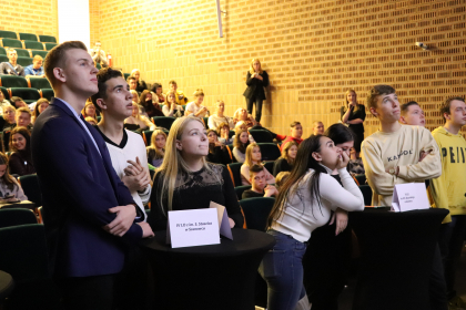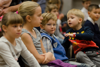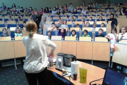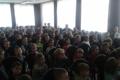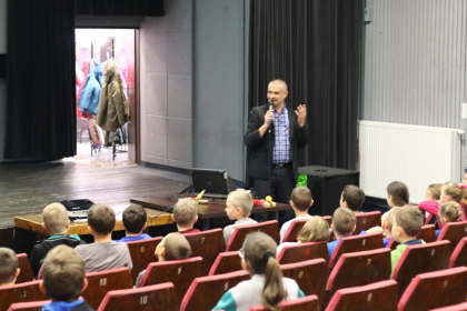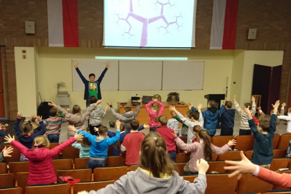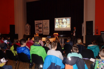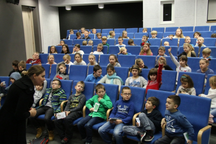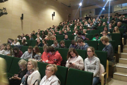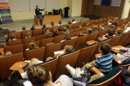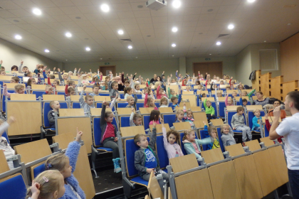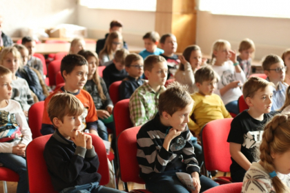 Studenci Tyskiego Uniwerystetu Dziecięcego na wykładzie o Broadway'u