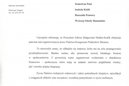 Podpisanie porozumienia z Regionalną Izbą Gospodarczą w Katowicach