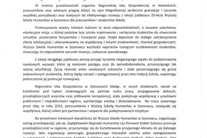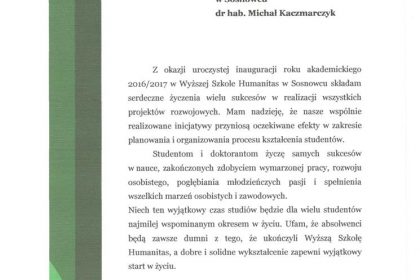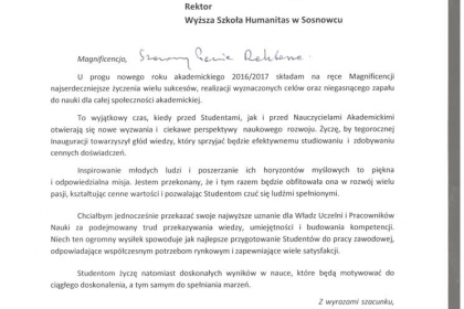 Listy gratulacyjne z okazji Inauguracji Roku Akademickiego 2015/2016